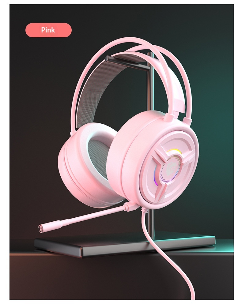 Pink Crystal Over-ear Wired Gaming Headset For PC And Laptop